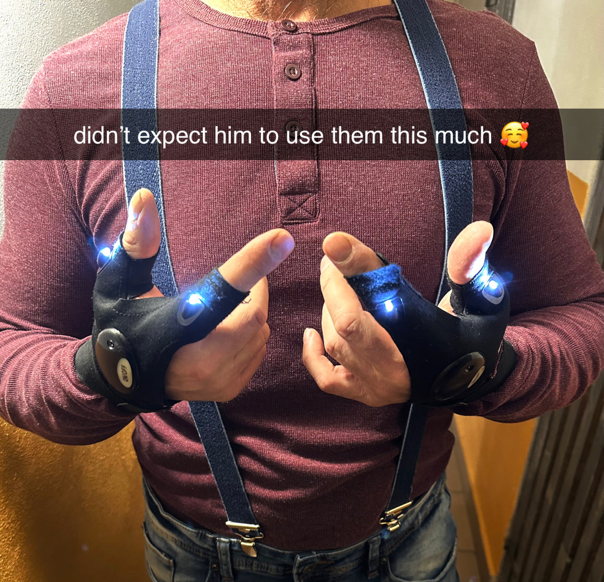 Sometimes you need both hands when working in the dark – and holding a flashlight just is not an option. Whether you’re fixing something in the garage, riding a bike, or working outdoors, these gloves give you the light you need –completely hands-free.